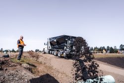 Although it looks similar to a traditional slinger truck, the EZ Flow is anything but typical. Packed full of new innovations like a skirtless hopper, newly designed Hardox steel body, and completely reengineered hydraulic package. The EZ Flow is the new standard of slinger trucks.