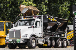 Although it looks similar to a traditional slinger truck, the EZ Flow is anything but typical. Packed full of new innovations like a skirtless hopper, newly designed Hardox steel body, and completely reengineered hydraulic package. The EZ Flow is the new standard of slinger trucks.